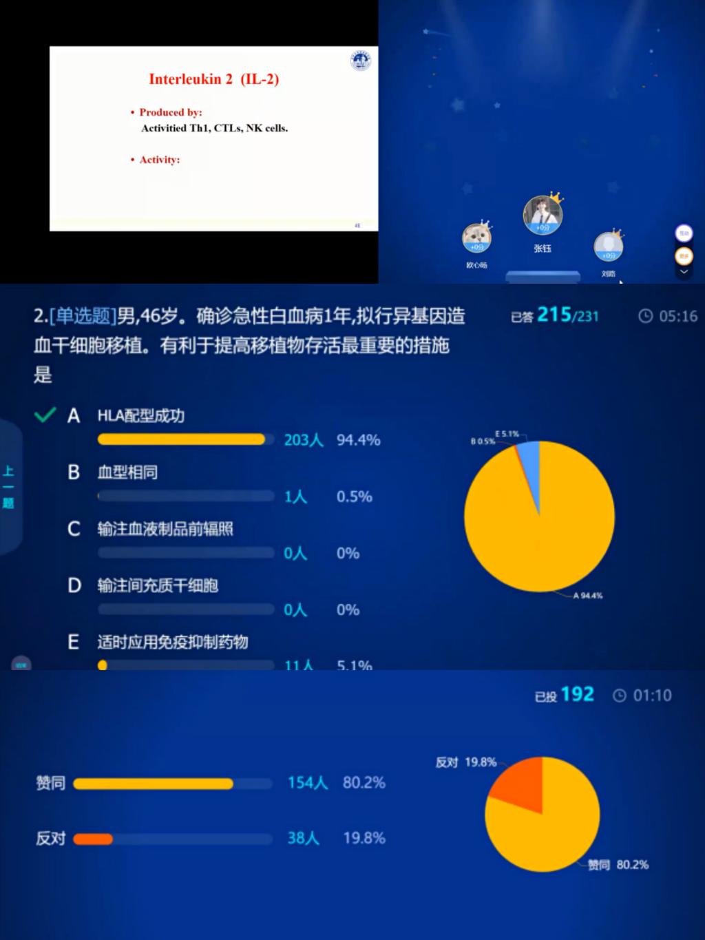 3.双语教学提升员工专业外语能力:医学免疫学内容艰深难于理解,基于调查问卷,根据员工的实际情况,课件制作由关键词英文标注、难点内容用中文标注于隐藏幻灯片逐渐过渡到全英文课件,课堂讲授采用由强调重点专业单词、中文为主逐渐增加英文讲授比例的过渡式双语授课方式。现在员工不仅能用英文总结重要专业知识点,也逐步尝试用英文参与学习通的讨论。