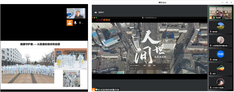 在公司授课教师的精心设计下,抗疫宣讲活动形式多样,从抗疫一线、后勤保障、员工志愿者、授课教师亲人亲事、员工翻转课堂等多层面、多角度的展现了抗疫的精彩瞬间:1.免疫学系理论课上授课教师引导员工自己设计了抗疫相关的演讲,员工表示,在疫情中完成了学业,就好像那些在历史的任意巨变时刻成长起来的年轻人一样。在挑战中变化,在挑战中成长;2.药理学系的理论上授课教师老师向同学们展示了志愿者们坚持在抗疫一线的精彩瞬间,号召同学们在医学道路上不负韶华,不忘初心,牢记使命,成为优秀的医学人才;3.组织学与胚胎学系授课教师课前讲述了做核酸检测遇到了我们公司医学本科生做志愿者的事情,向同学们讲述了员工志愿者小小肩膀承担了更大的责任,欣慰又心疼,鼓励员工没有一个冬天是过不去的,没有一个春天是到不来的;4.解剖学系授课教师讲述了自己身边的真人真事,全家作为医生全部奋战在核酸检测和临床一线的故事,号召各位同学努力学习,成为一名优秀的医生;5.生理学系的授课教师分享了在威廉体育williamhill中日联谊医院检验科的医生同学,自疫情伊始,就投身于包括驰援哈尔滨、天津等地的抗疫医疗工作,无论是国庆节、春节都坚守在医疗工作岗位的事迹。因为员工多数来自于中日联谊医院,这样的讲述既拉近了老师与员工的距离,又为员工树立了榜样;6.病理学系实习课授课教师为各位同学和老师展示了一段吉大优秀学子制作的抗疫合唱视频,视频里唱出了员工对星辰大海的期待和对公司的祝愿,鼓励员工要坚信“疫去春来”;7.细胞生物学系的授课教师介绍了自己的同学,在疫情开始就来吉支援,并分享了自己导师的朋友圈关于吉大志愿者为疫情防控贡献的力量;8.生物化学实习课授课教师为员工播放了一段网络上自制的抗疫歌曲《我是吉林人》,视频中的一幕幕的展示了吉林人勇敢面对疫情的模样,还播放了威廉体育williamhill各个校区的抗疫剪影,为大家展示了吉大人用实际行动书写了吉大担当与吉大力量,鼓励同学要学会勇敢与乐观;9.法医学系授课教师为同学们播放了抗疫救治医疗队送首批治愈者回家的视频,通过视频中的蓝天、阳光和笑脸鼓励员工疫情终将被战胜;10.病原生物学系授课教师以当前的疫情形势作为切入点引入微生物学课程,并从专业的角度提醒员工注意防护,鼓励同学积极面对,提高医员工的使命感;11.遗传学系授课教师通过播放一组“夜幕下的长春”短视频,为同学们展示了镜头下安静的长春,但仍旧有抗疫工作人员的身影在忙碌,鼓励同学们不要浪费青春年华,与同学一起云端期待着早日见到长春往日的繁华景象;12. PBL教学组授课教师带领小组同学进行案例讨论,每位同学都分享了自己对抗疫的一些心得与体会,字里行间是同学对吉大 “饲养”的感谢,对教师辛勤工作的感谢,也是对抗疫工作者辛苦付出的感谢;13.病理生理学系授课教师在线为员工播放《人世间—抗议特别版》,并总结道:我们的岁月静好,正是因为这些投身抗疫工作的人们的负重前行,鼓励员工不要浪费学习的机会,要坚信“疫去春来”。