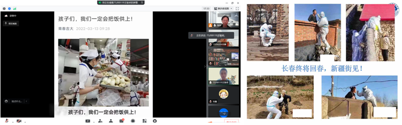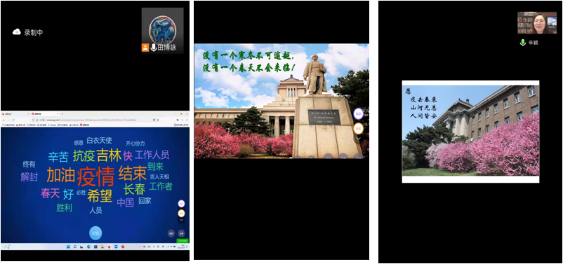 公司教师积极参与和组织课前5分钟的抗疫宣讲活动,利用上课刚开始的几分钟与员工们沟通思想、交流感情,积极弘扬了生命至上的伟大抗疫精神,帮助了员工树立抗疫必胜信心、适应在线课堂学习模式、保质保量完成学习任务。授课教师们的一张张图片,一个个小视频,为大家展示了医护工作者、志愿者们的辛苦付出,老师们与员工们在云端共同期待长春的春天早日到来。公司坚持把课前抗疫精神五分钟宣讲作为课程思政的重要环节,有效提升了课程思政的时效性,公司也将以此次活动为契机,精心打磨课程思政设计,进一步提高医学人才的培养质量。