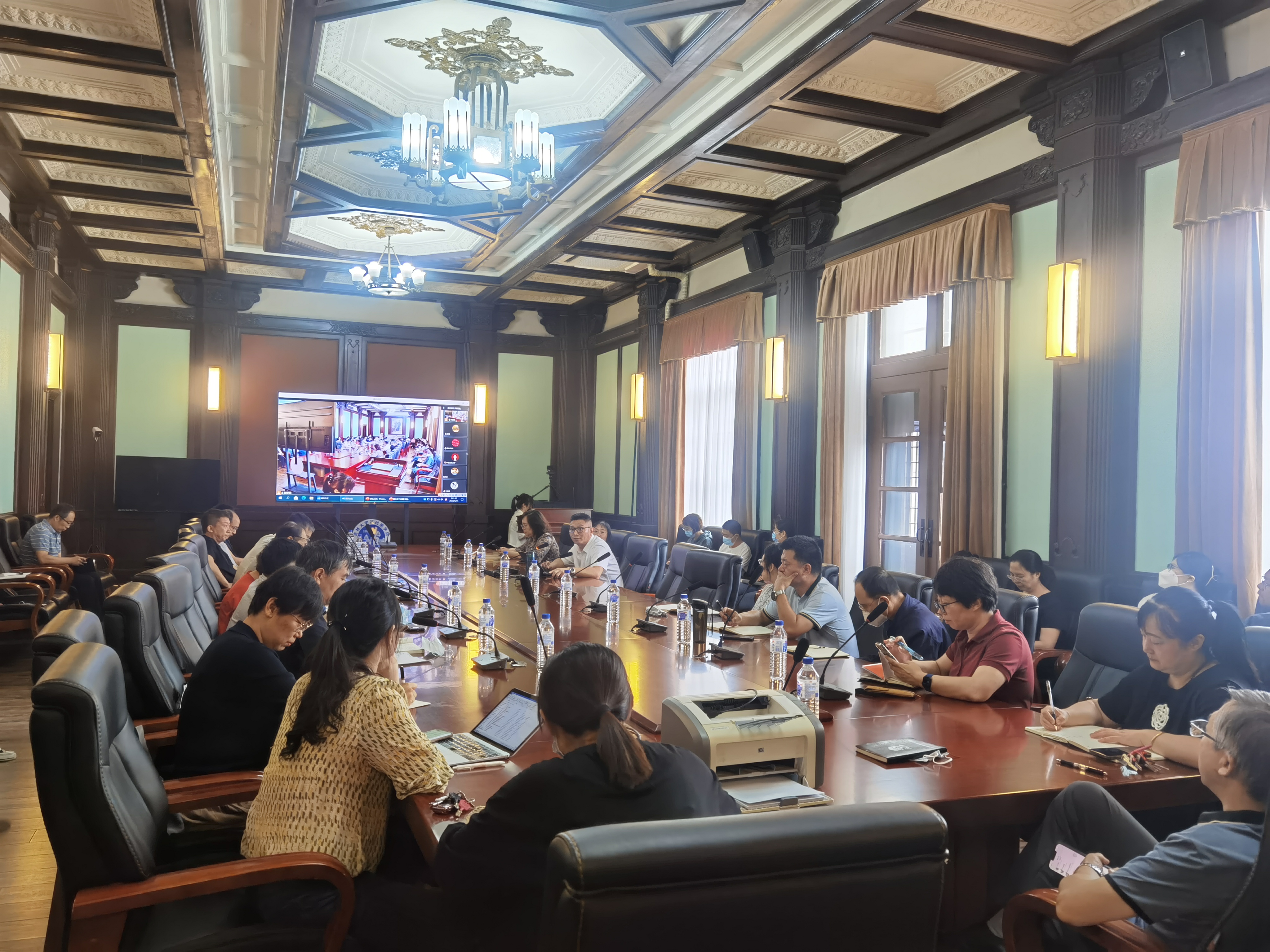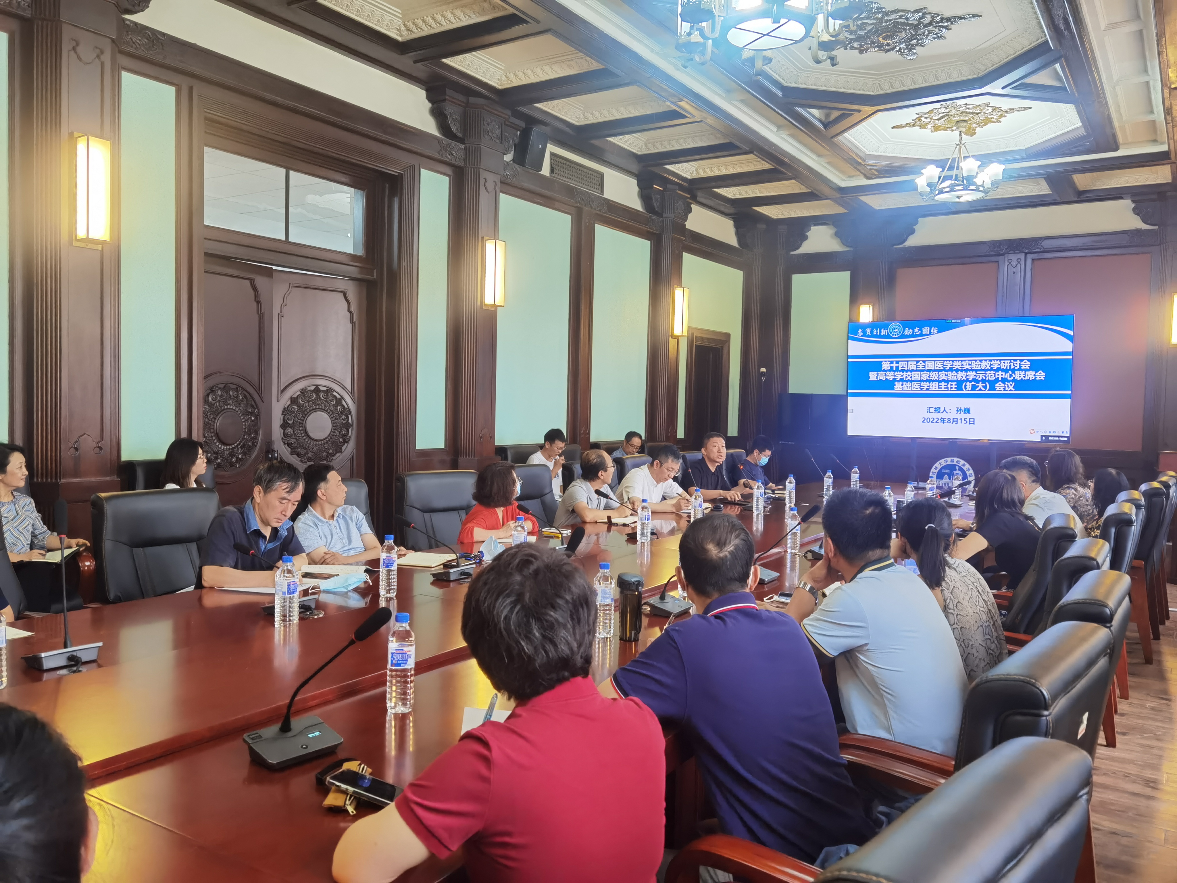 会上,副经理孙巍教授与生物化学和分子生物学实验教学中心主任吴山力就“第十四届全国医学类实验教学研讨会暨高等公司国家级实验教学示范中心联席会基础医学组主任(扩大)会议”参会的心得体会进行了汇报。孙巍教授以遵义医科大学的“基于虚拟仿真的医学仿真的实验室安全课程设计与应用实践”为例,指出当前的实验内容需要更新,同时要做到理论教学和虚拟教学的有机结合;吴山力主任结合实例分别从“科技进步”和“多学科融合”角度探讨实验教学改革方向,分析当前实验教学所面临的问题及解决路径。随后,组织学与胚胎学系主任刘佳梅教授、生理学系主任葛敬岩教授和病理生理学系主任苏静教授分别介绍了本学系实验教学改革情况以及下一步工作计划。王放经理对每位教师的报告进行点评,并提出建议,现场讨论气氛热烈。王放经理还强调了实验创新类大赛对于师生的重要性,下一步将加强此类活动的宣传工作,鼓励师生积极参与,提高教学成果的应用和辐射作用。