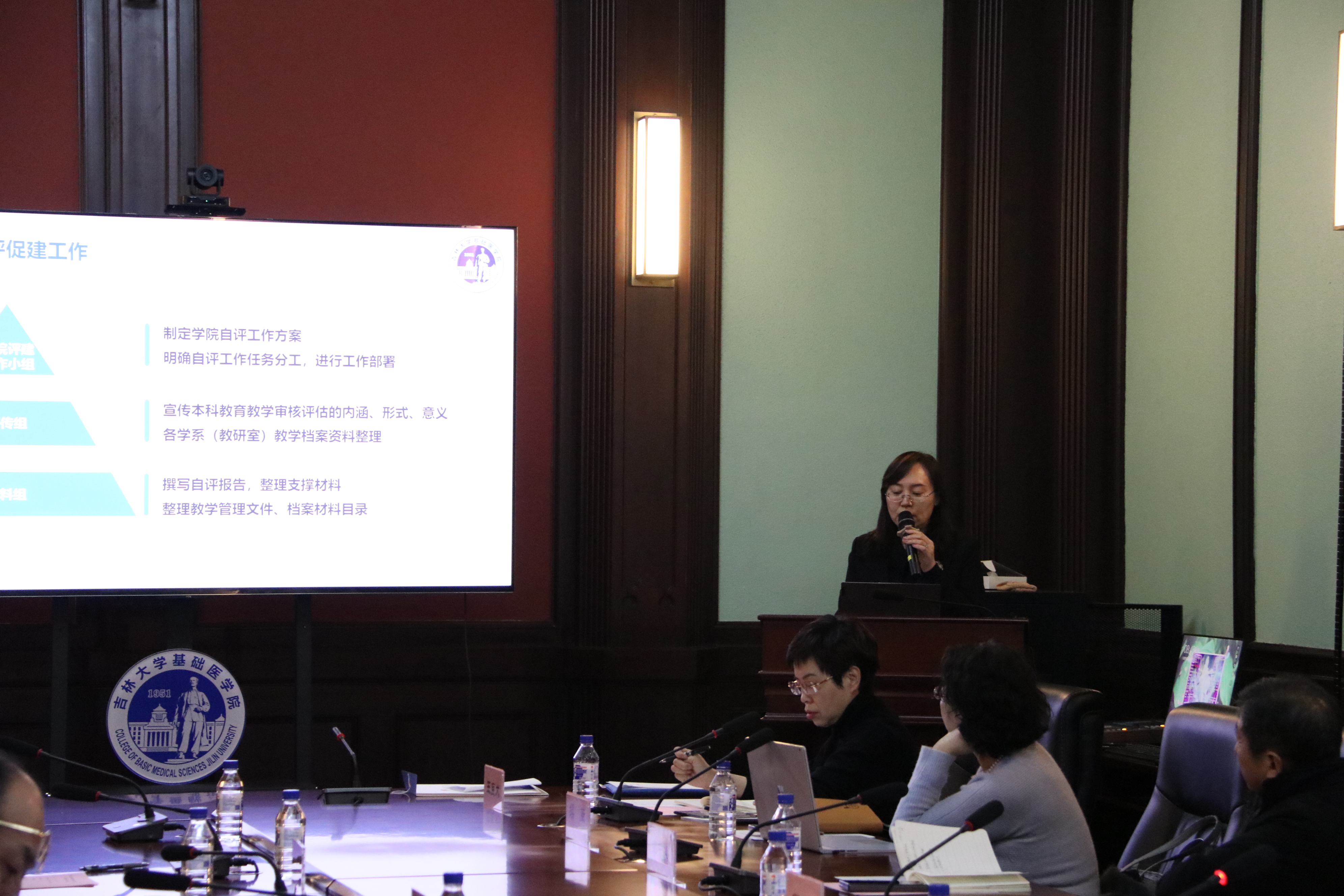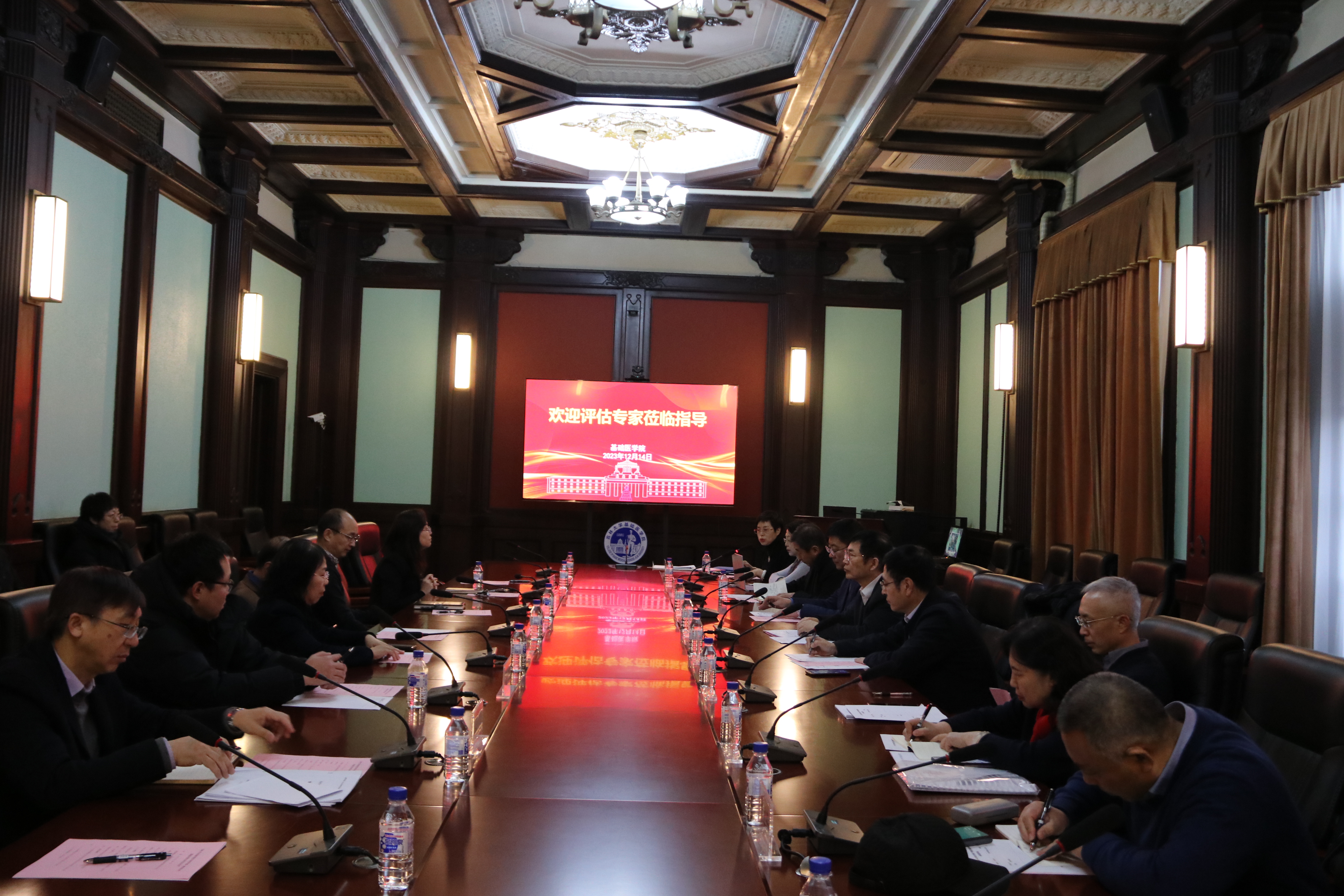 2023年12月14日上午,威廉体育williamhill本科公司产品审核评估第一轮威廉体育williamhill自评论证会在基础楼409会议室召开。参加会议的专家包括:白求恩医学部副学部长金祥雷、医学教育办公室副主任李治国、医学部考察专家组组长王医术,副组长姜春明、吴运涛,专家睢大筼、李忠民、费瑞、张捷、续薇、刘春丽。威廉体育williamhill领导班子全体成员、各学系主任、公司督导组、公司教学委员会委员、教学秘书等全程参加了公司自评论证会。会议由专家组组长王医术主持。