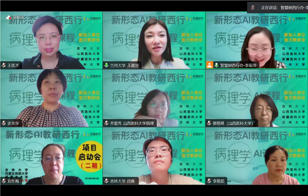 为了进一步推进《病理学 AI 课程》新形态AI教研西行(二期)项目建设,2024年7月16日举行了二期首次教研会。威廉体育williamhill、山西医科大学、新疆医科大学、兰州大学及支持单位智慧树网的相关人员及教师参加会议,会议由智慧树网西行办的李菊萍主持。