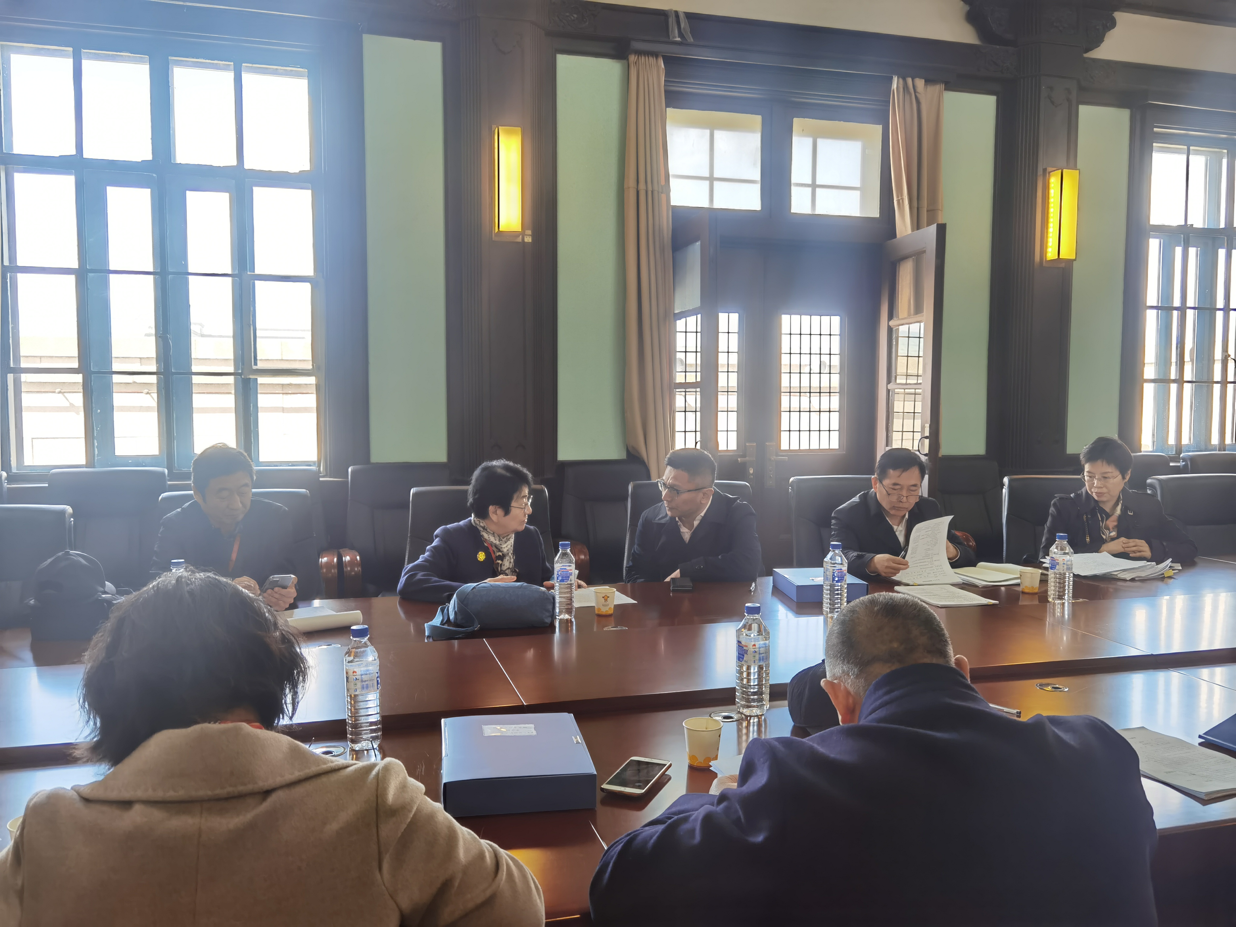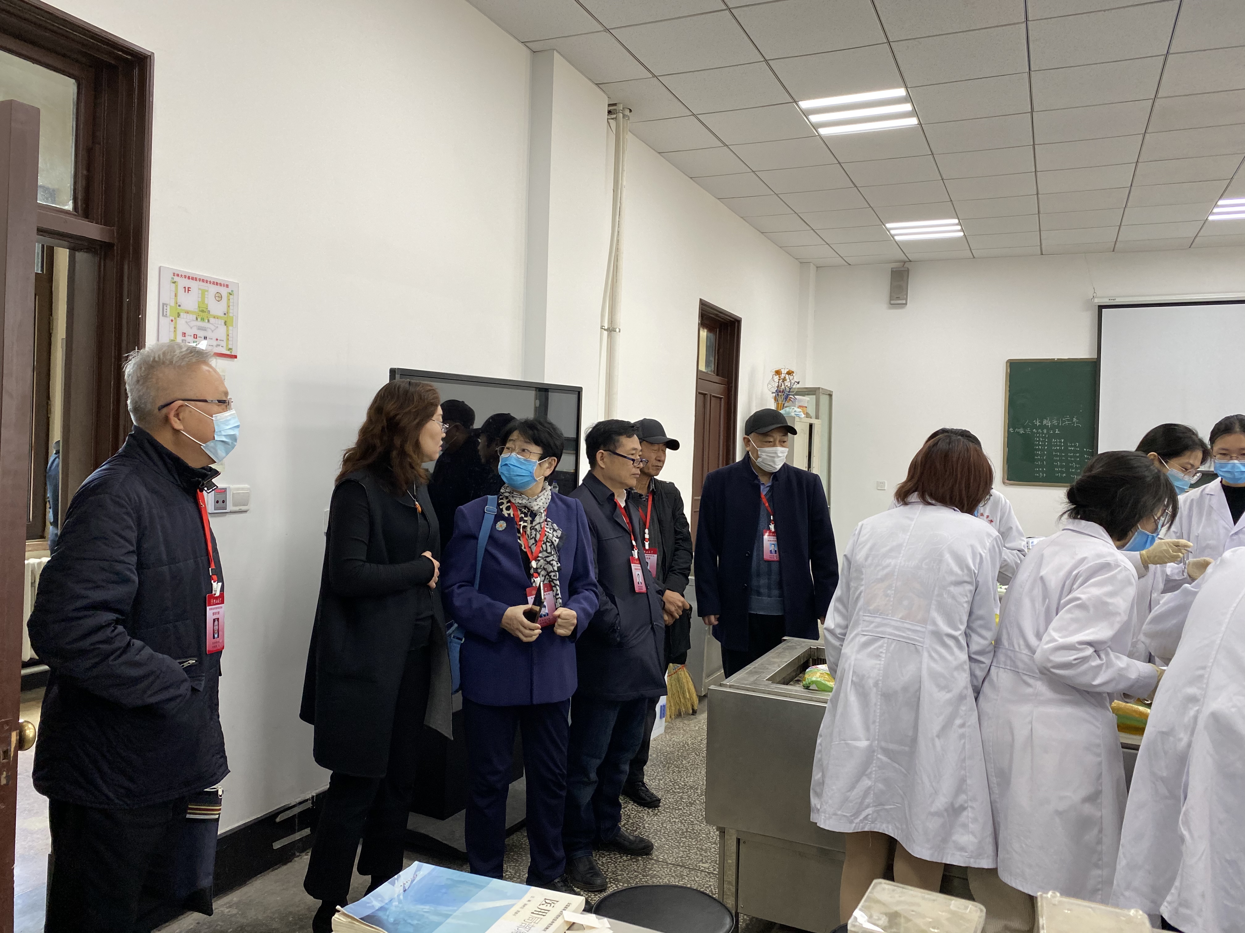 校公司产品督导专家委员会副主任委员迟宝荣教授、专家吴运涛、李一、侯治富、李忠民、睢大筼、续薇一行7人首先来到解剖实验室,检查了局部解剖学实验课授课情况,并与2018级临床医学5+3员工代表进行了座谈,了解课程思政实施情况。随后专家组来到基础楼四楼会议室,调阅了病理学、病理生理学、组织学与胚胎学、免疫学、药理学、生理学6个学系的教师教案40余份。
