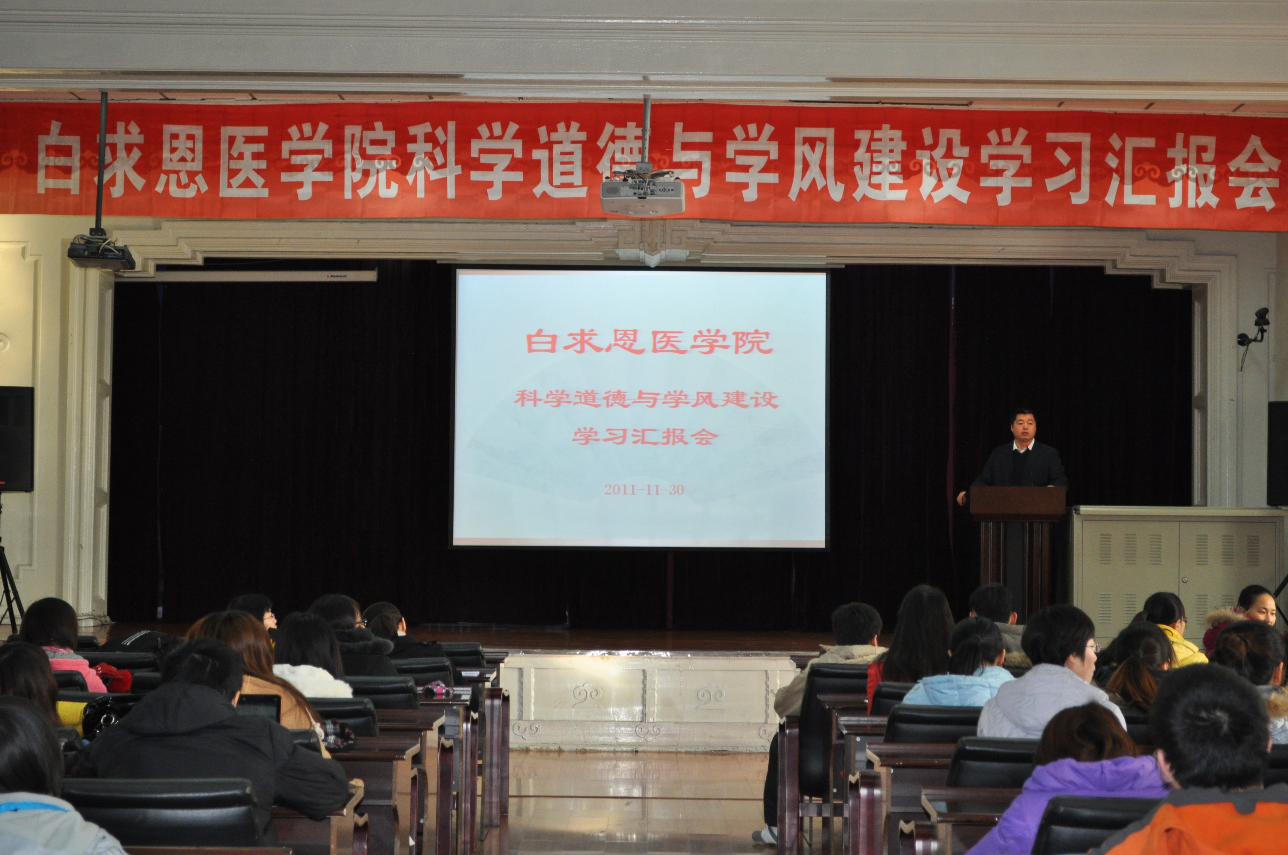 11月30日下午,白求恩医公司研究生科学道德和学风建设学习汇报会在基础楼二楼多功能学术报告厅举行。公司党委书记屈英和、副经理李一雷、副书记费淑波和研究生办公室老师黄梅及研究生一起参加了会议。会议由公司研究生办公室主任陈野主持。