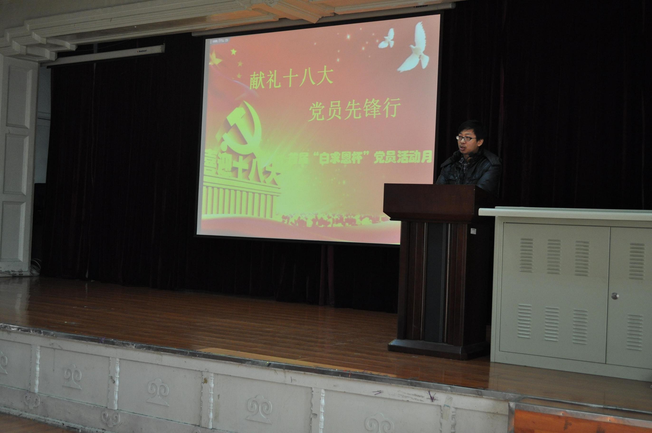 为迎接十八大的胜利召开,11月8日上午,白求恩医公司2012级硕士、博士党支部主办的“献礼十八大,党员先锋行”系列活动之首届“白求恩杯”党员活动月开幕式暨博士硕士学术交流会在基础楼二楼多功能学术报告厅举行。公司党委书记屈英和、副经理李一雷、党委副书记费淑波、研究生办公室主任黄梅和2012级博士、硕士党员及同学一起参加了开幕式。开幕式由2012级硕士党支部书记张钰主持。
