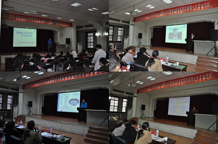 首先孙巍介绍了论坛的基本情况,而后,四位博士生分别以“CS-PEI/BMP2纳米粒子促骨再生的研究”、“WJ-MSCs expanded on gelatin microbeads retain self-renewal and multipotency characteristics and capacity in enhancing skin wound healing”、“量子点标记自杀基因靶向可视化治疗肝癌的体内外研究”和“MUC1通过激活JNK/AP1通路介导肝癌细胞自分泌TGF-β信号”为题对投稿论文进行讲解。每位同学宣讲结束时,专家组分别进行提问并进行精彩点评,参会研究生就自己感兴趣的热点问题与宣讲博士生进行了充分沟通和交流。