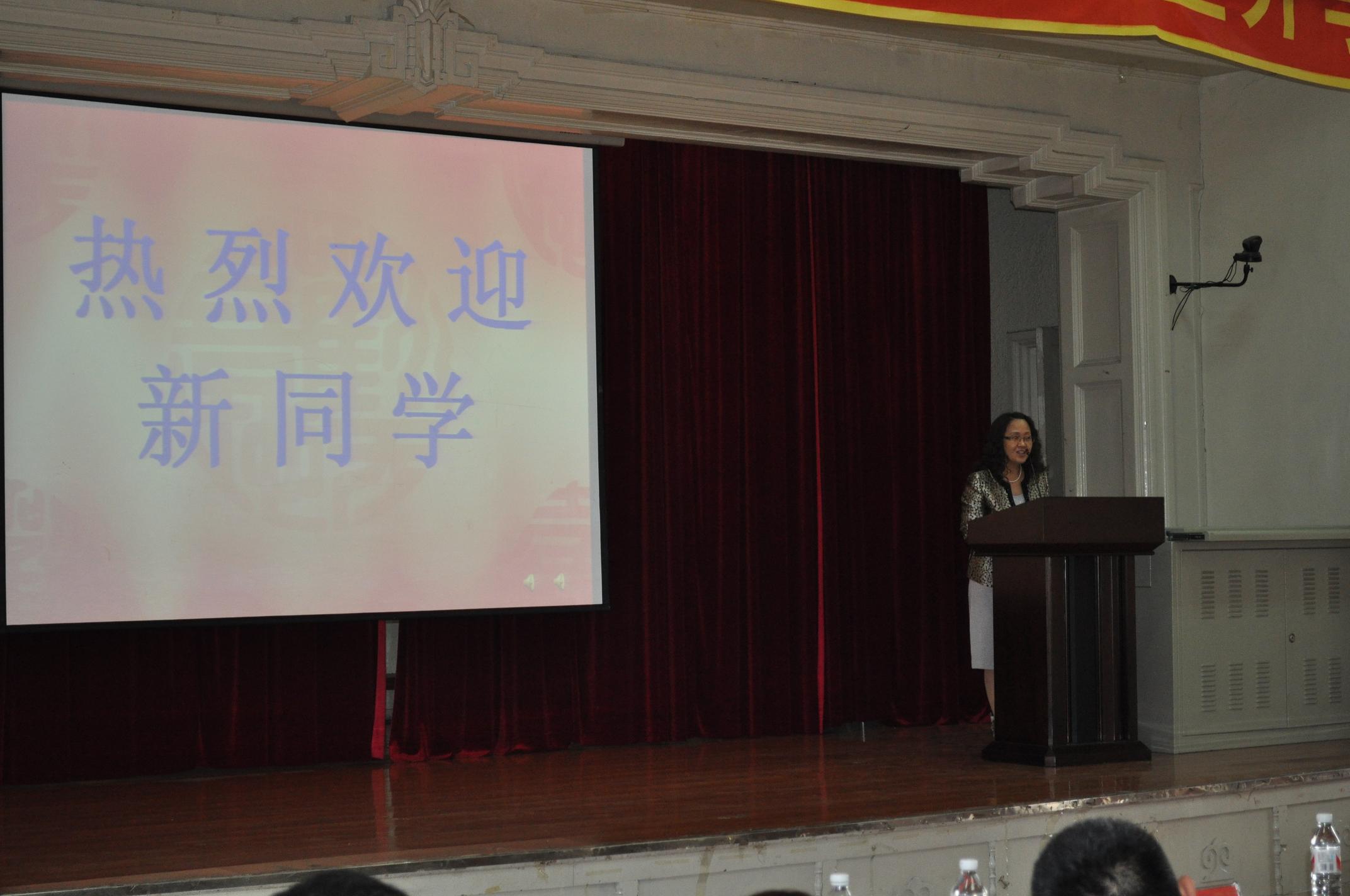 导师代表台桂香致欢迎辞。她祝愿同学们在科学的海洋里,培养勇于创新的精神,养成严谨的科学态度,学会吃苦耐劳,在科研道路上收获更多的成就。