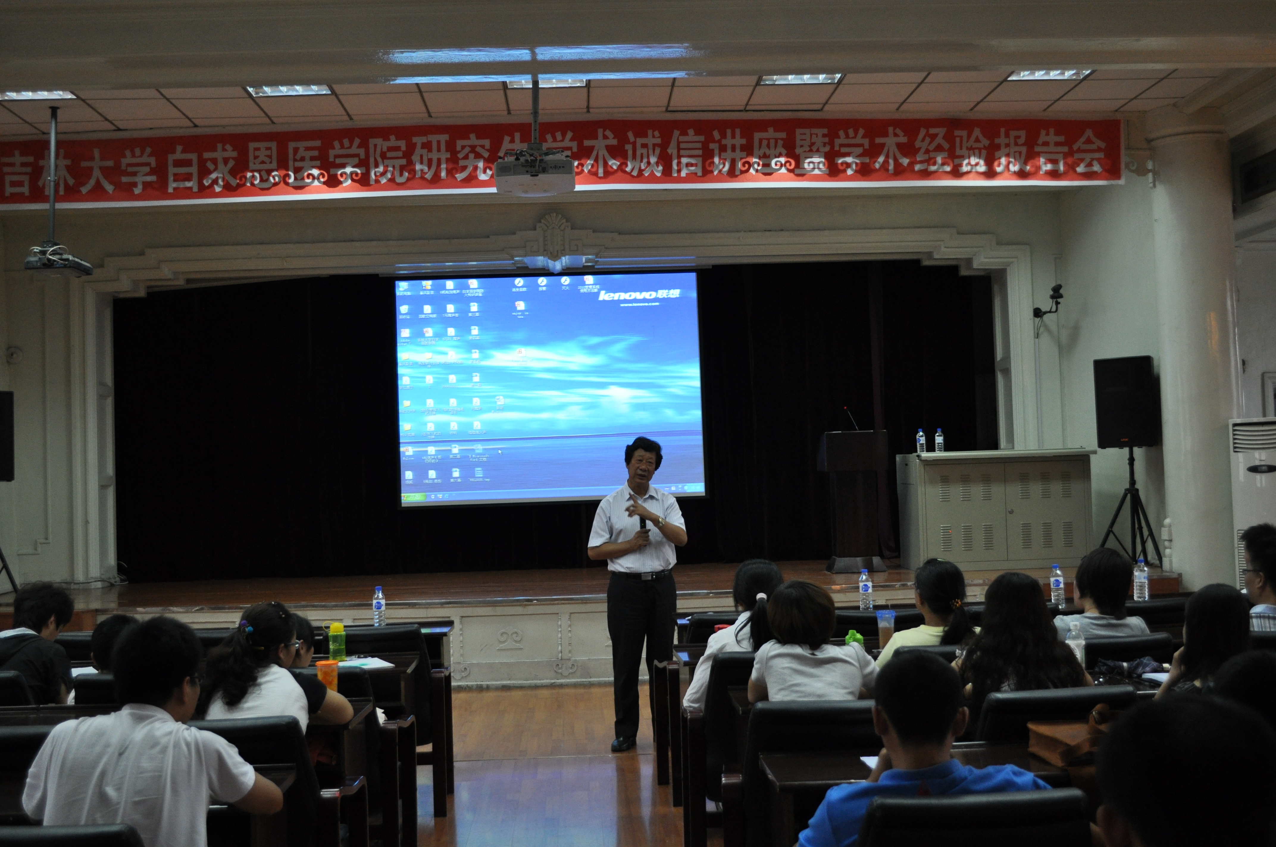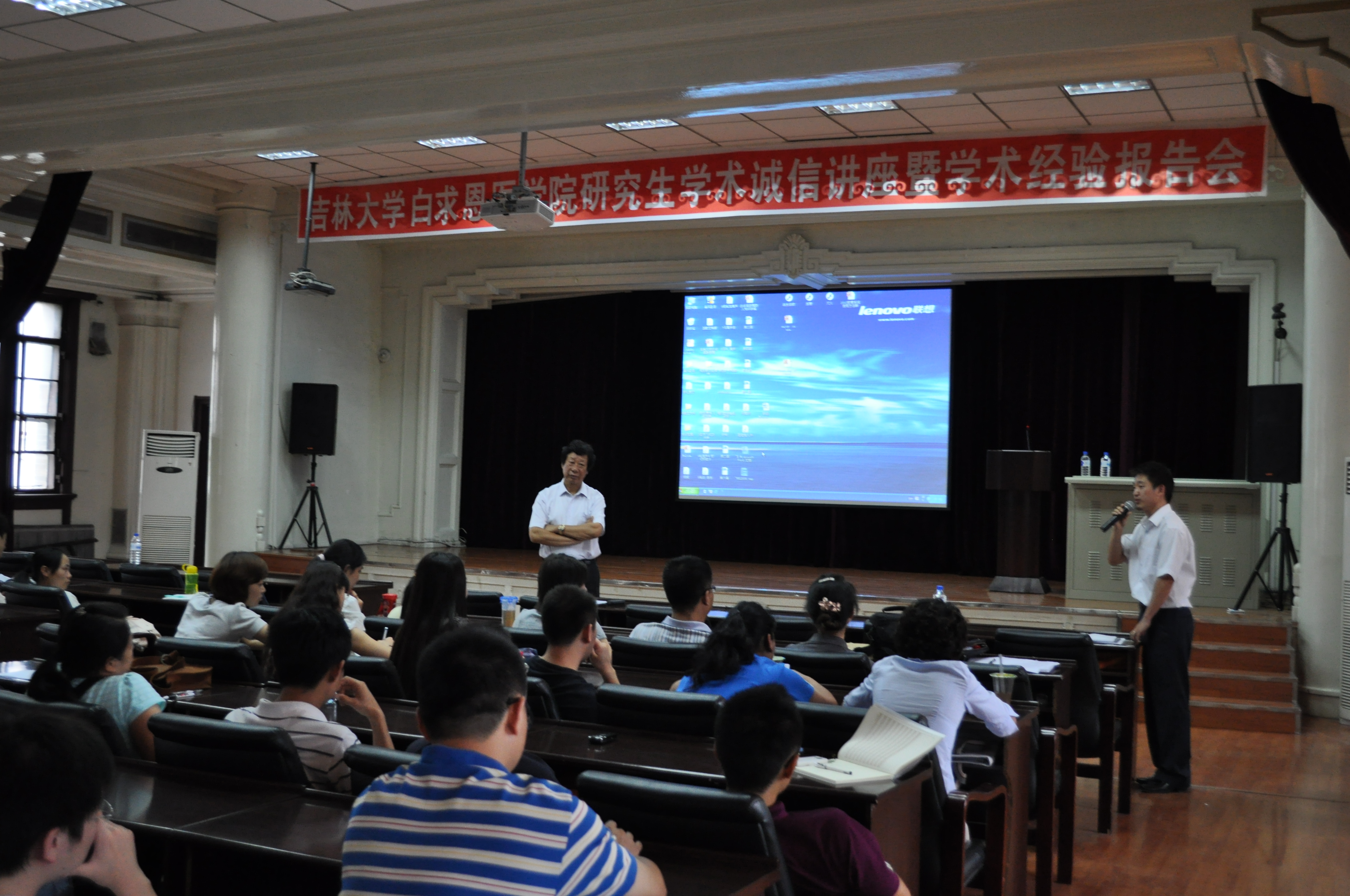 9月3日下午,白求恩医公司邀请2010届优秀毕业生---苏静、王国庆在基础二楼多功能报告厅进行了研究生学术经验报告会。原威廉体育williamhill常务副董事长、白求恩医公司经理李玉林教授和2010级研究生一起参加了报告会。报告会由公司党委副书记费淑波主持。