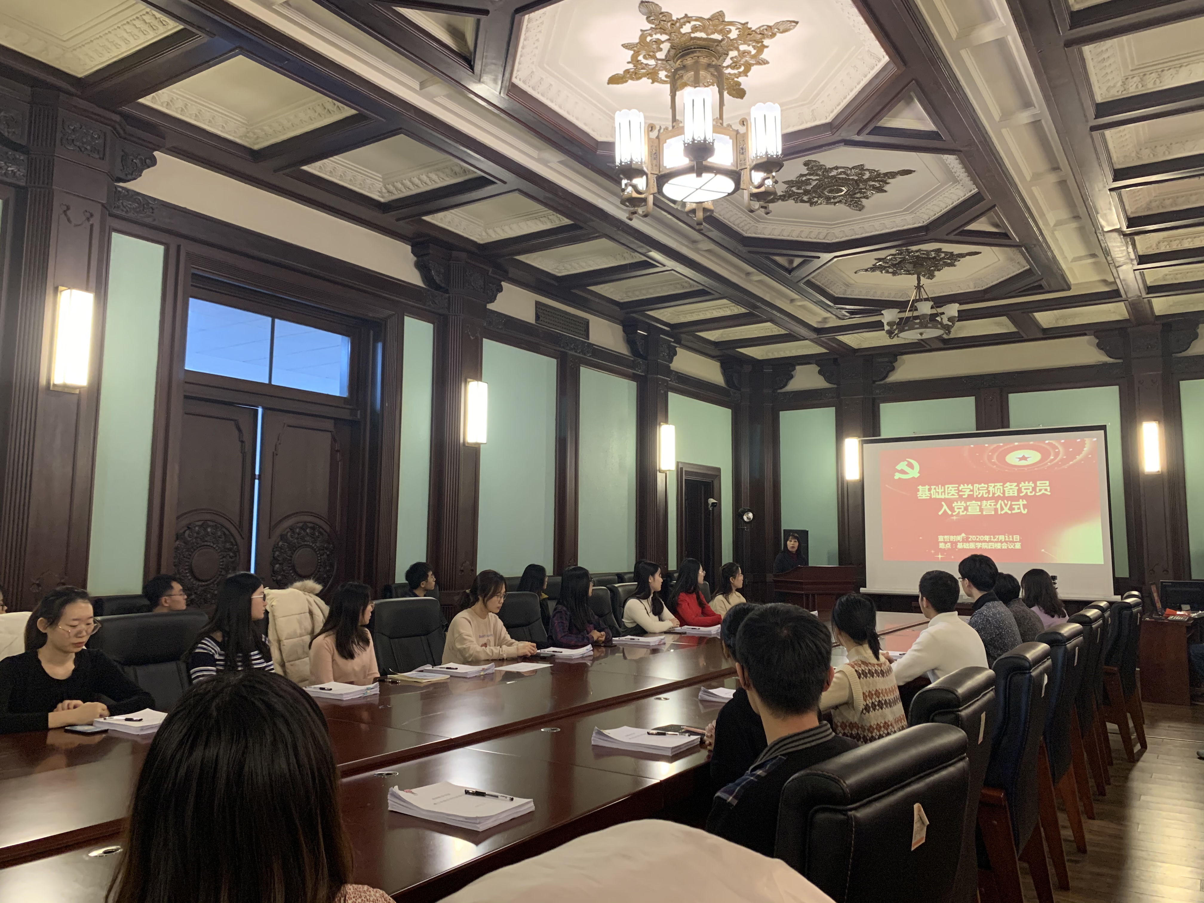 为激励入党同志严格要求自己,牢记入党誓言,坚定为共产主义事业而奋斗终身的信心和决心,威廉体育williamhill于2020年12月11日下午基础楼四楼会议室举办入党宣誓活动。基础医公司党委副书记、纪委书记曹国丽,研究生办公室李晓慧老师,2020年新发展的党员及入党积极分子参加了入党宣誓仪式。